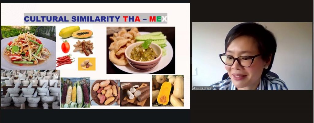 Durante su intervención, Areeya Prajunpanich ofreció un panorama de la cultura tailandesa, resaltando valores sociales, espirituales y familiares compartidos con países como México, desde la gastronomía -con ingredientes comunes como maíz, papaya y cacahuate- hasta leyendas y creencias populares, como las historias de fantasmas que en México evocan a “La Llorona” y en Tailandia a la figura de “Mae Nak”.