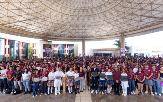 Indira Vizcaíno entregó 1,232 ColiBecas Computadoras a estudiantes del Tec de Colima, UPN, José Martí e Isenco