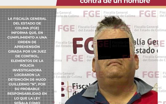 La Fiscalía General del Estado de Colima (FGE) informa que, en cumplimiento a una orden de aprehensión girada por un...