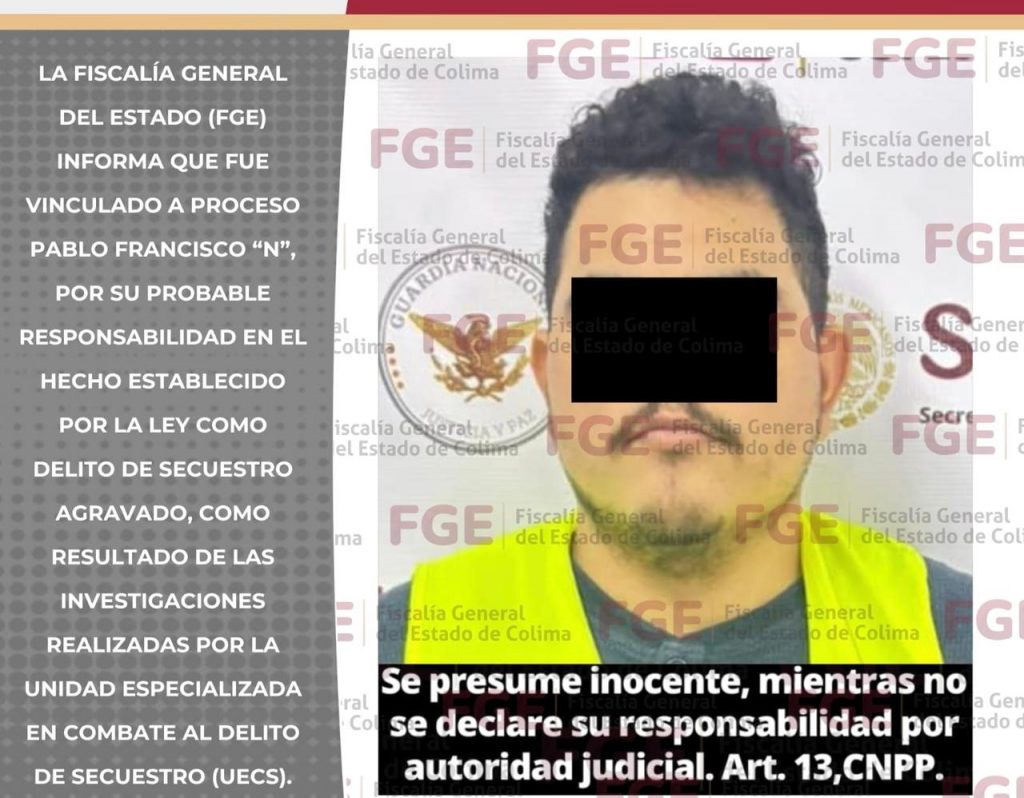 La Fiscalía General del Estado (FGE) informa que fue vinculado a proceso Pablo Francisco “N”, por su probable responsabilidad en el hecho establecido por la ley como d3lito de s3cuestr0 @gravado, como resultado de las investigaciones realizadas por la Unidad Especializada en Combate al D3lito de S3cu3stro (UECS).