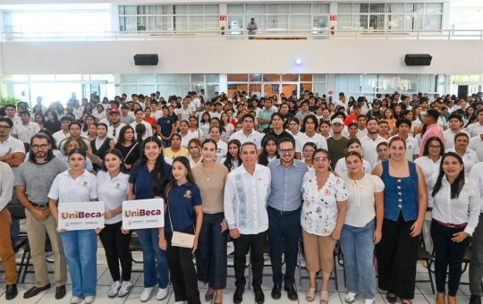 La mañana de este martes, la presidenta municipal de Manzanillo, Rosa María Bayardo Cabrera, entregó tarjetas del programa UniBeca a...