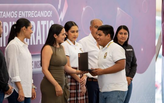 * Gobernadora de Colima también entregó mobiliario y proyectores a docentes del municipio tecomense La gobernadora de Colima, Indira Vizcaíno...
