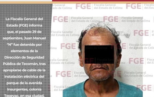 La Fiscalía General del Estado de Colima (FGE) obtuvo sentencia condenatoria en procedimiento abreviado en contra de Víctor Manuel “N”...