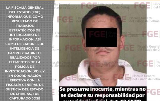 La Fiscalía General del Estado de Colima (FGE) informa que, en cumplimiento a una orden de aprehensión girada por un...