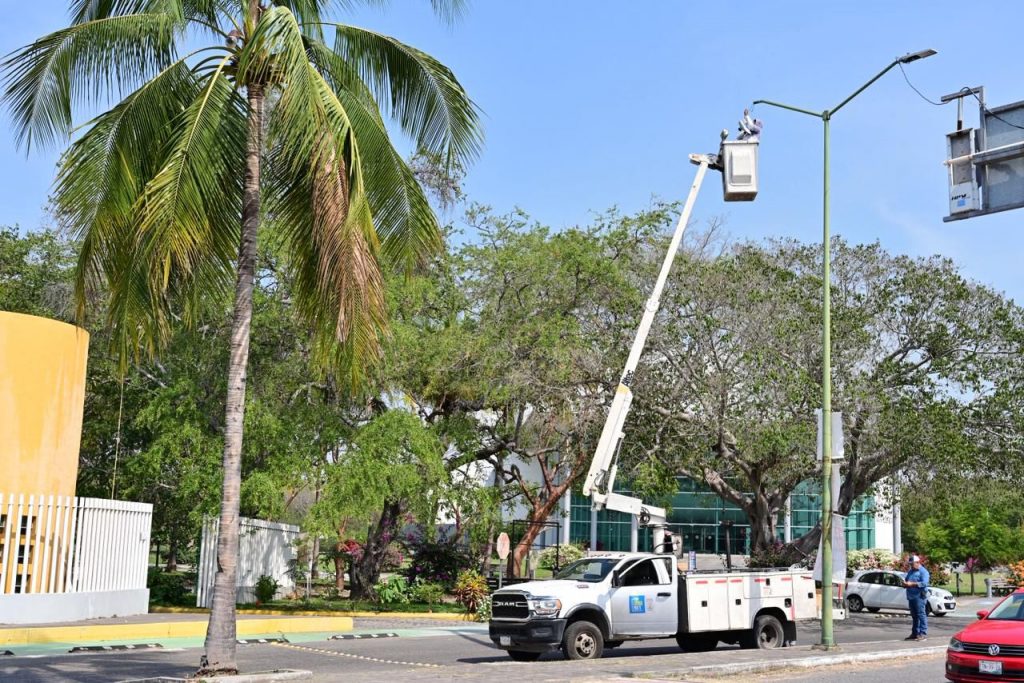 Durante estas acciones se retiraron las luminarias de color azul/morado que se encontraban previamente, con el objetivo de mejorar la visibilidad, la seguridad vial y peatonal, así como brindar una imagen urbana más adecuada para esta importante vialidad.