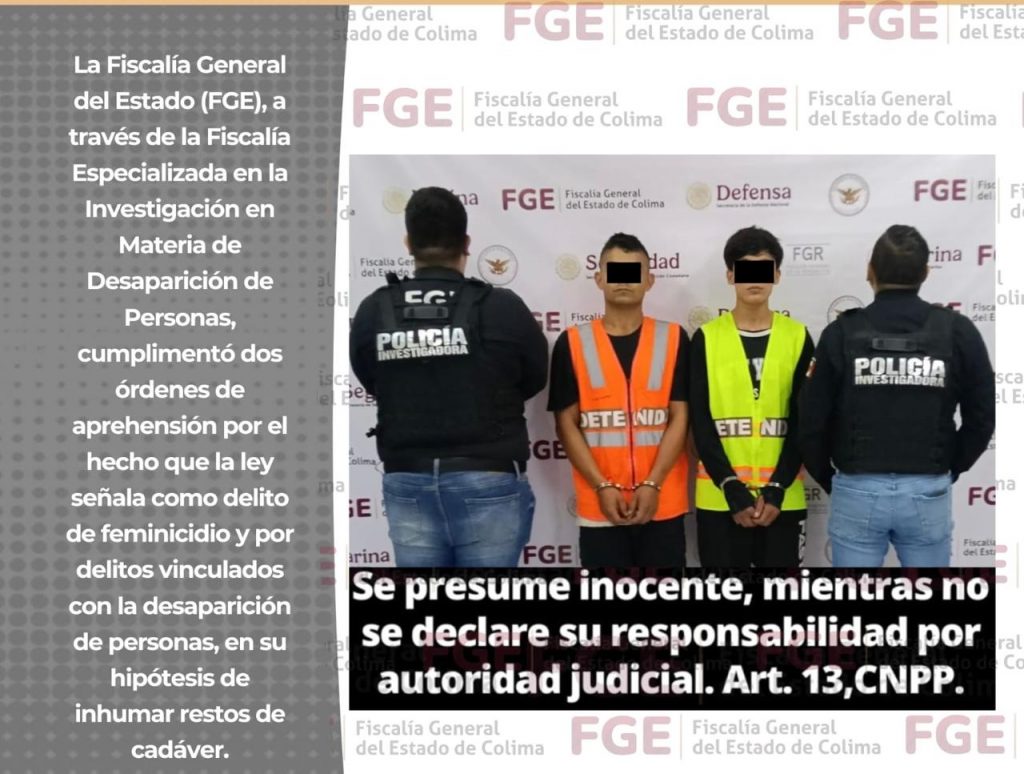 La Fiscalía General del Estado (FGE), a través de la Fiscalía Especializada en la Investigación en Materia de D3s4p4rición de P3rsonas, cumplimentó dos órdenes de aprehensión por el hecho que la ley señala como d3l1to de f3m1n1c1dio y por d3l1t0s vinculados con la d3s4p4rición de p3rsonas, en su hipótesis de inhumar restos de c4dáv3r.