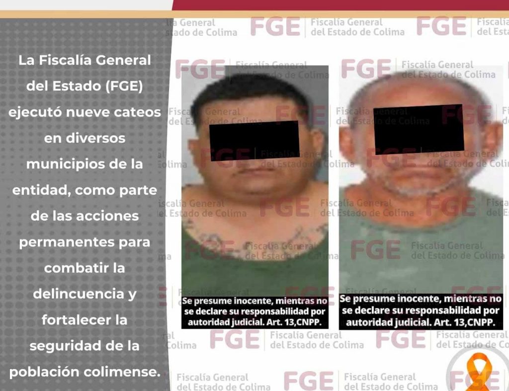 La Fiscalía General del Estado (FGE) ejecutó nueve cateos en diversos municipios de la entidad, como parte de las acciones permanentes para combatir la d3lincuencia y fortalecer la seguridad de la población colimense.