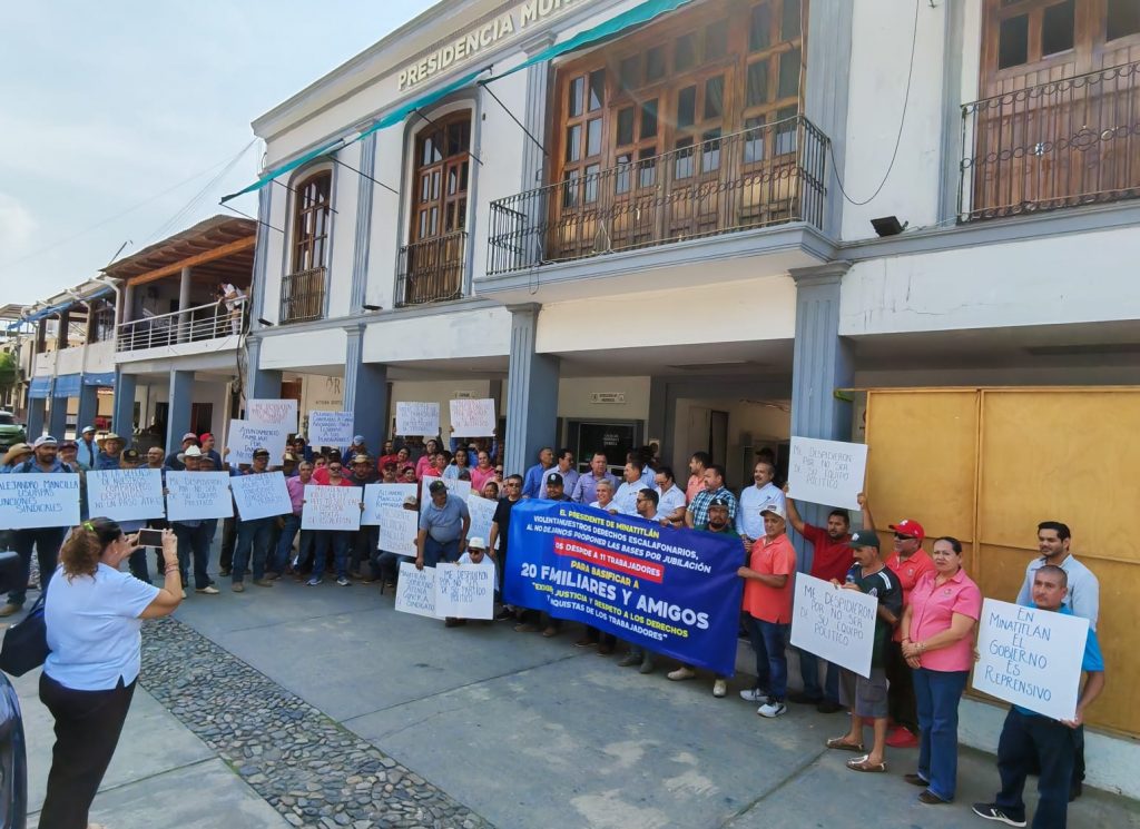 Minatitlán, Col. Apoyados por líderes sindicales pertenecientes a la Unión de Sindicatos, trabajadores del Ayuntamiento de Minatitlán se manifestaron este jueves por la tarde al exterior de la presidencia municipal para exigir al presidente municipal, Alejandro Ciserón Mancilla González, a quien acusaron de despedir injustificadamente a once trabajadores sindicalizados, para basificar a veinte familiares.
