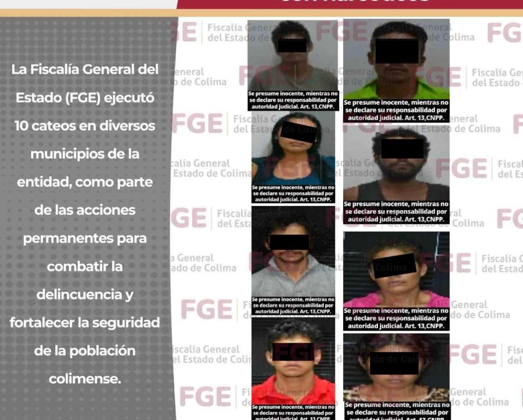 La Fiscalía General del Estado (FGE) ejecutó 10 cateos en diversos municipios de la entidad, como parte de las acciones permanentes para combatir la d3l1ncu3ncia y fortalecer la seguridad de la población colimense.