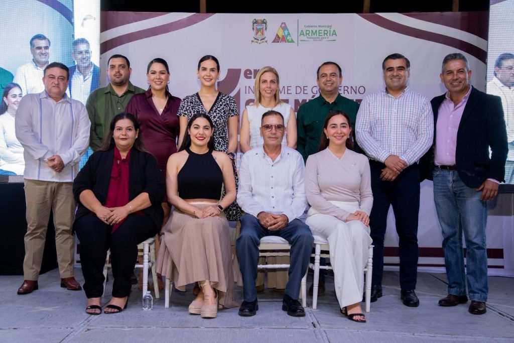 La gobernadora del estado de Colima, Indira Vizcaíno Silva, asistió al Primer Informe de Labores del presidente municipal de Armería, J. Cruz Méndez González; ahí la mandataria estatal dijo que el gobierno de la presidenta de México, Claudia Sheinbaum Pardo, la administración estatal, en coordinación con el ayuntamiento armeritense están trabajando para devolver la esperanza a las y los habitantes del municipio más joven del estado.
