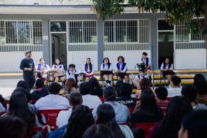 Mariana Puente, integrante del equipo Loras UdeC, expresó a nombre de sus compañeras el compromiso de representar dignamente al IMSS y a la Universidad de Colima. Destacó la formación integral que han recibido de su entrenador, tanto en lo técnico como en valores de disciplina, tenacidad, respeto y responsabilidad, así como el respaldo constante de sus familias. “Agradecemos a la Universidad por el apoyo en nuestra formación. Tenemos emoción y nervios, pero también la confianza de que responderemos a quienes han creído en nosotras. Tenemos fe de que regresaremos sonrientes y compartiremos con ustedes el éxito obtenido”.
