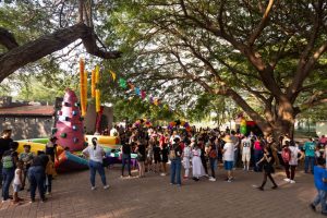 Durante el recorrido que hizo el rector, quien llegó acompañado por varios de sus funcionarias y funcionarios más cercanos, se notó el gran trabajo realizado por estudiantes de Artes Visuales. Los salones y pasillos mostraron el trabajo de investigación y trabajo manual realizado por las y los jóvenes durante varios meses. El tema de este año fue el de las orugas que se convierten en crisálidas y luego en mariposas, un proceso que simboliza el tránsito del ser humano cuando trasciende la realidad física y se vuelve espíritu.
