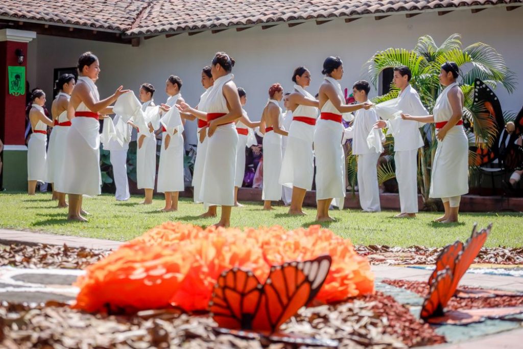 Explicó que esta actividad anual promueve “una experiencia llena de arte, comunidad, fiesta y tradición”. La han realizado en este plantel durante los últimos 12 años. Danza dorada se refiere a la mariposa monarca y su migración, entendida como un símbolo de la metamorfosis del mundo terrenal hacia el mundo de los mu3rtos.