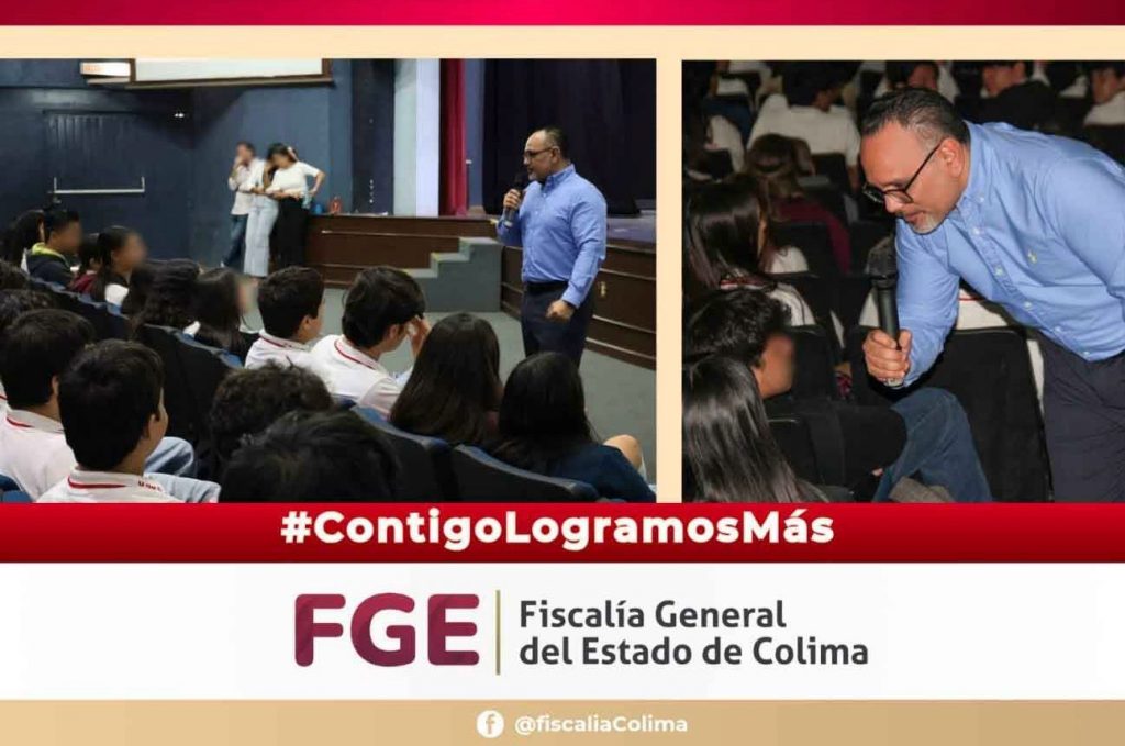 Ante más de 1,200 estudiantes del Bachillerato No. 1 de la Universidad de Colima, el Fiscal General del Estado, Bryant Alejandro García Ramírez, impartió este día la conferencia “3xt0rsión: cómo identificarla, prevenirla y denunciarla”, con el objetivo de fortalecer la cultura de la prevención entre la comunidad estudiantil.
