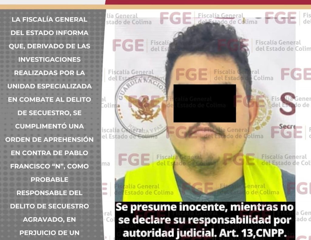 La Fiscalía General del Estado informa que, derivado de las investigaciones realizadas por la Unidad Especializada en Comb@t3 al D3lito de S3cu3stro, se cumplimentó una orden de aprehensión en contra de Pablo Francisco “N”, como probable responsable del d3lito de s3cu3stro agravado, en perjuicio de un hombre.
