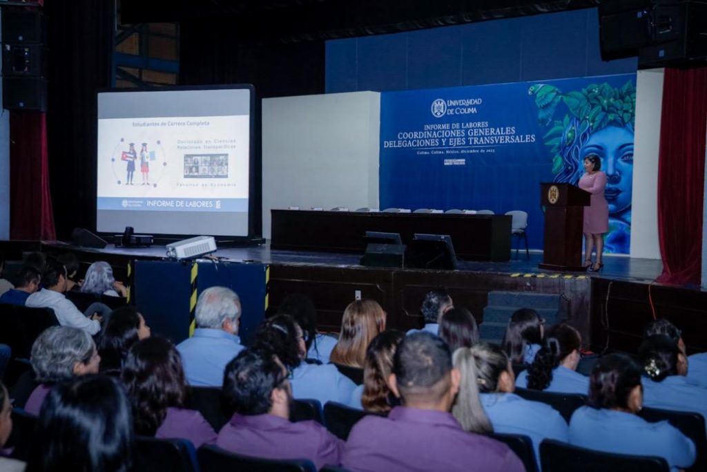 Finalmente, compartió que la Universidad de Colima mejoró su desempeño en rankings internacionales, avanzando posiciones en el THE, QS y UniRank, y registró altos niveles de satisfacción (más del 96 %) entre estudiantes participantes en movilidad e iniciativas de internacionalización, confirmando el impacto positivo de estas acciones.