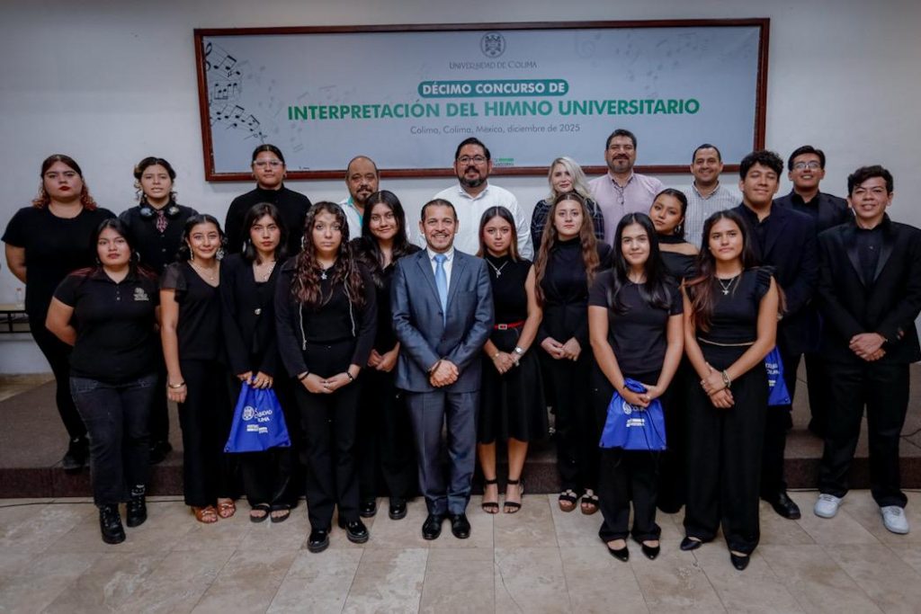 Recordó que este concurso inició hace diez años bajo impulso del actual rector, y señaló que “más allá de los resultados, la participación reafirma el compromiso de la comunidad universitaria con los valores que representa nuestra institución. Cada vez que un universitario entona el himno, se recuerda a sí mismo quién es y qué representa la Universidad de Colima”.