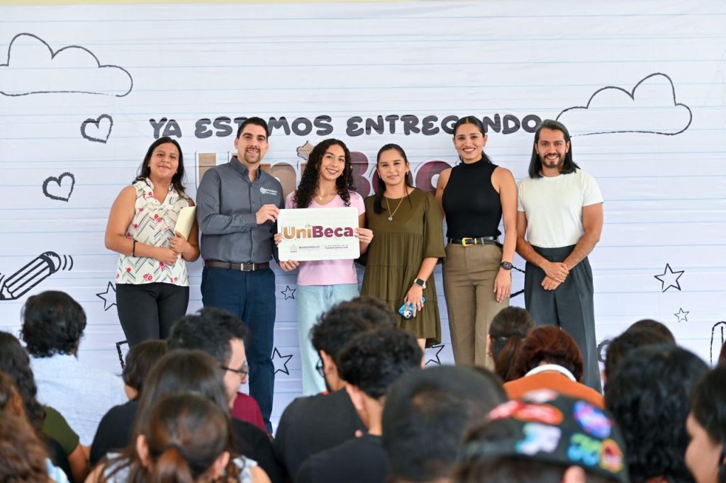 El Gobierno de Manzanillo encabezado por la presidenta Rosa María Bayardo Cabrera, realizó este miércoles la entrega de tarjetas de UniBeca a estudiantes manzanillenses que cursan sus estudios en el campus central de la Universidad de Colima.