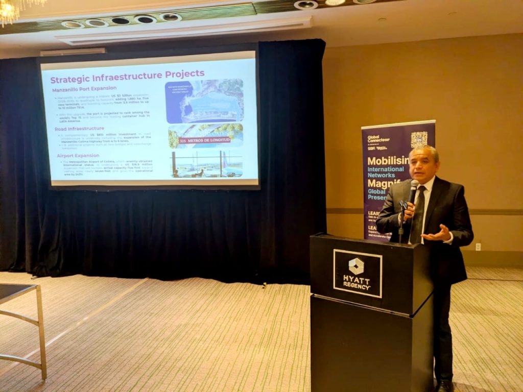 Durante el encuentro, el secretario Rodríguez García presentó información clave y fortalezas del estado de Colima, destacando sus vocaciones productivas, sectores estratégicos, así como los avances en infraestructura logística y portuaria, fundamentales para atraer capital extranjero y potenciar el desarrollo económico estatal, regional y nacional.