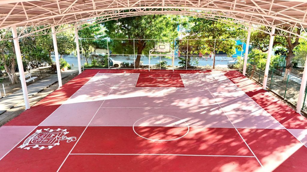 Entre las acciones realizadas se encuentra la instalación de nuevas porterías, tableros, rehabilitación de la techumbre, así como la colocación de nuevo cercado perimetral, entre otras mejoras que permitirán un mejor uso y mayor seguridad para quienes acuden a practicar deporte o convivir.