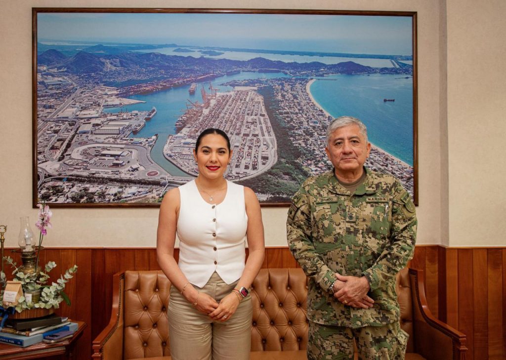 La tarde de este viernes, en las instalaciones de la Administración del Sistema Portuario Nacional (Asipona) de Manzanillo, la gobernadora del estado de Colima, Indira Vizcaíno Silva, se reunió con el Almirante Gerardo de Jesús Toledo Guzmán, subsecretario de Asuntos Marítimos y Portuarios, de la Secretaría de Marina del Gobierno de México.