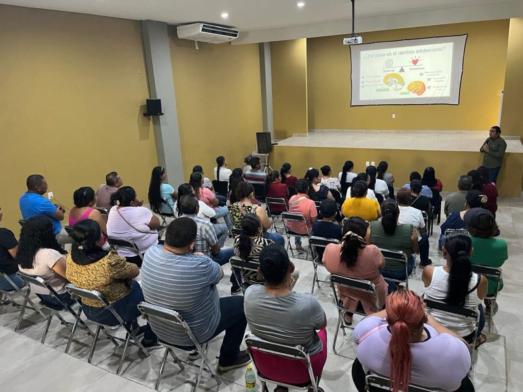La primera intervención se realizó en el Bachillerato 7, ubicado en la cabecera municipal de Armería, donde se impartió la charla “Identidad y adolescencia”, a cargo del psicólogo José Salvador Martínez. Durante la sesión, reflexionaron sobre los retos que enfrentan las familias en la crianza de adolescentes y la importancia del acompañamiento emocional y formativo en esta etapa.