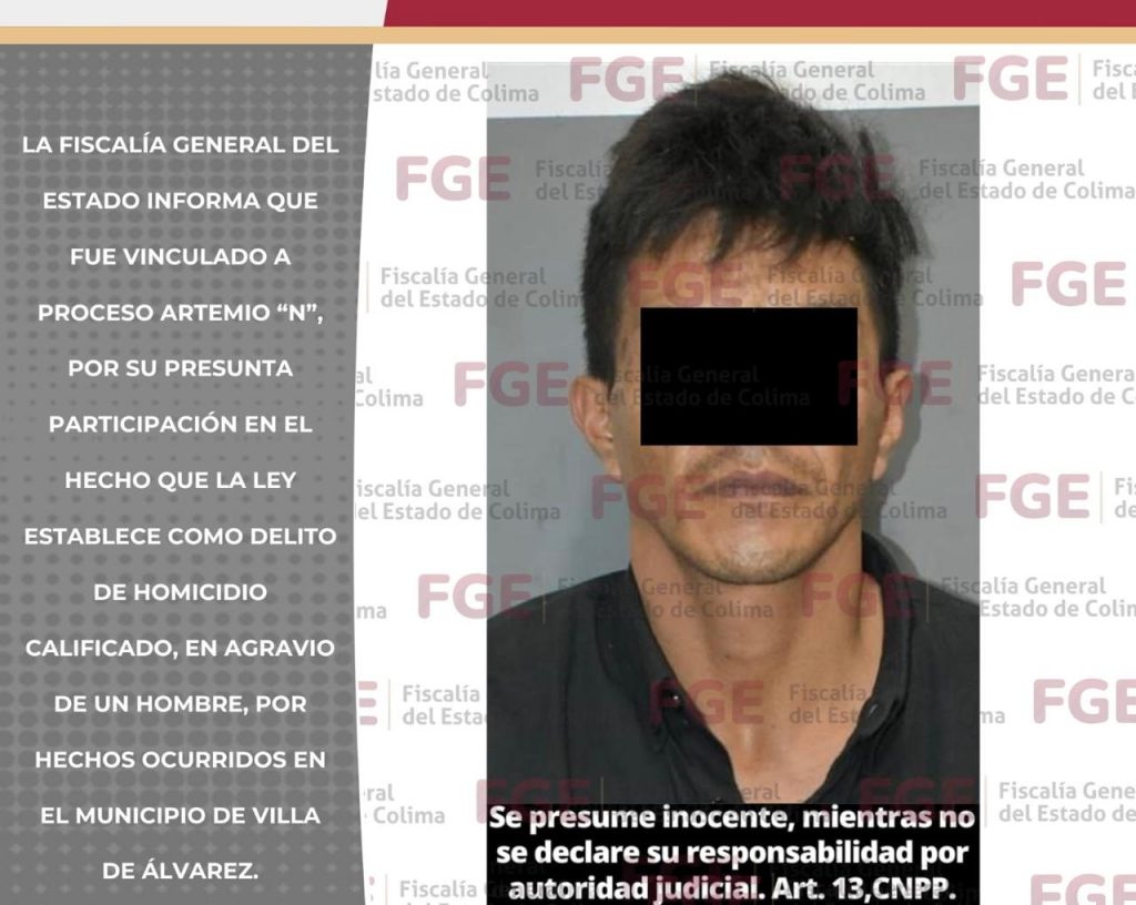 La Fiscalía General del Estado informa que fue vinculado a proceso Artemio “N”, por su presunta participación en el hecho que la ley establece como d3l1to de hQm1c1dio calificado, en @gr@vio de un hombre, por hechos ocurridos en el municipio de Villa de Álvarez.