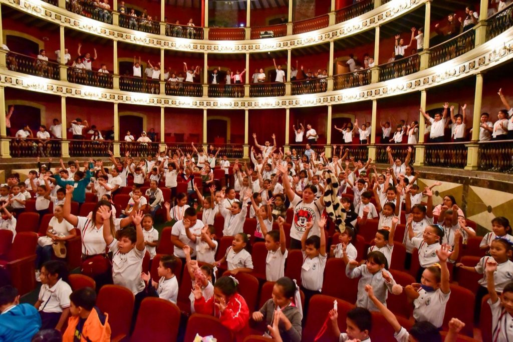 Este programa nacional, que en la entidad se desarrolla bajo la modalidad de ‘La Escuela va al Teatro’, tiene el objetivo de acercar a niñas, niños y adolescentes a experiencias escénicas de calidad que favorezcan su desarrollo integral, estimulen su creatividad y promuevan su pensamiento crítico, así como coadyuvar en la generación de espacios de reflexión y aprendizaje, a través del arte.