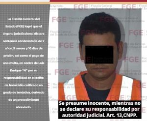 La Fiscalía General del Estado (FGE), a través del personal de la Fiscalía Especializada en la Investigación de D3lit0s por Razones de Género y Tr4t4 de P3rson4s, obtuvo la vinculación a proceso de Marcos “N” por el hecho constitutivo del d3l1to de viol3nci4 intrafamiliar.