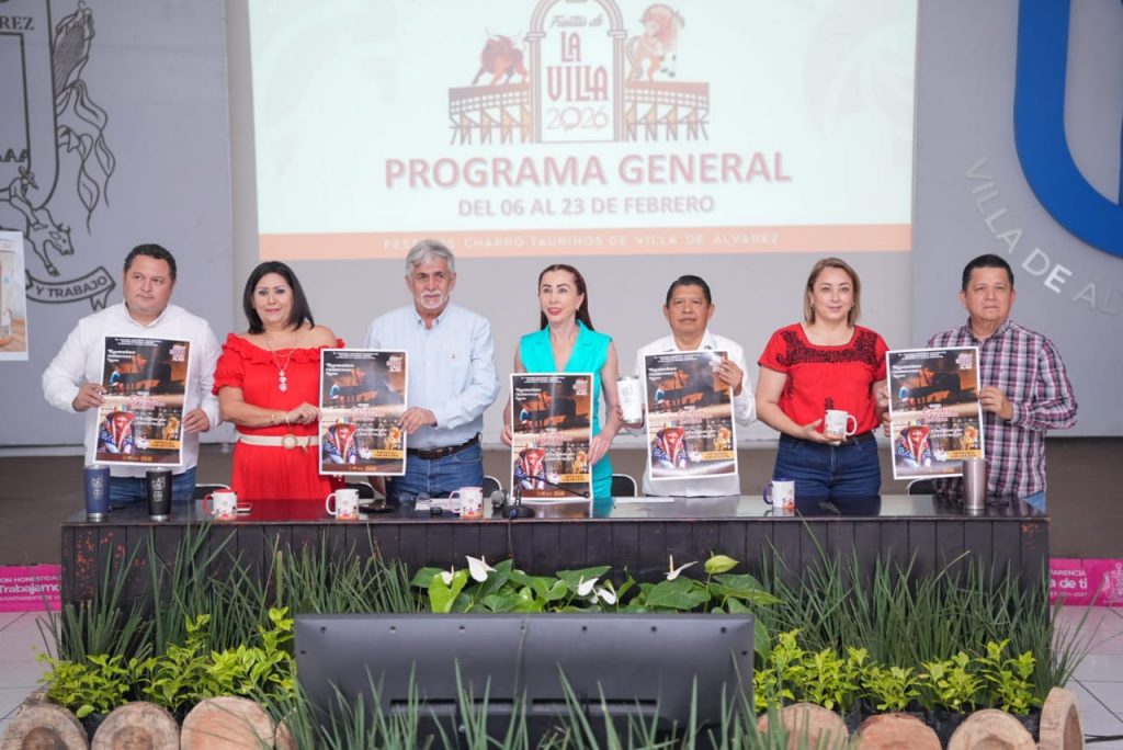 Villa de Álvarez, Colima. – La Presidenta Tey Gutiérrez Andrade presentó el Programa General de los Festejos Charrotaurinos Villa de Álvarez 2026, que en su edición número 169 celebrará 14 cabalgatas, 11 toros de once, 11 recibimientos, 12 jaripeos vespertinos, dos jaripeos nocturnos, tres espectáculos con artistas de talla nacional e internacional y dos corridas formales de toros.