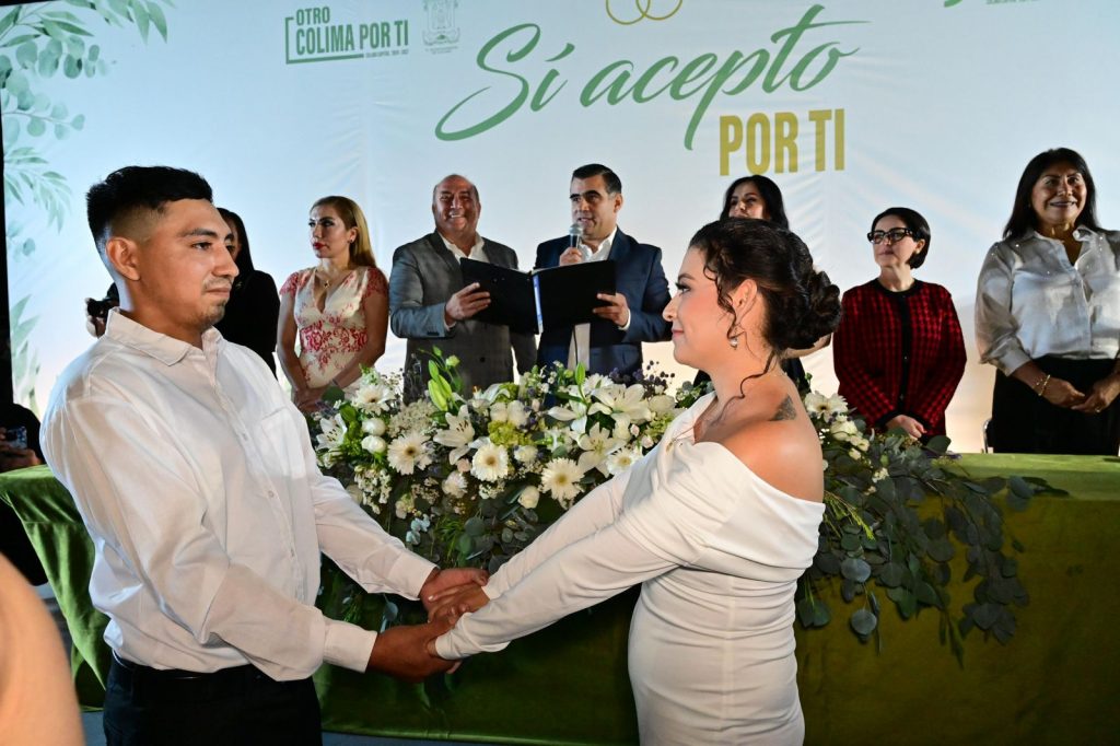 La ceremonia colectiva de matrimonios civiles fue organizada por el Ayuntamiento capitalino, a través del DIF Municipal Colima, que preside Quetzalin Rivera Gutiérrez.