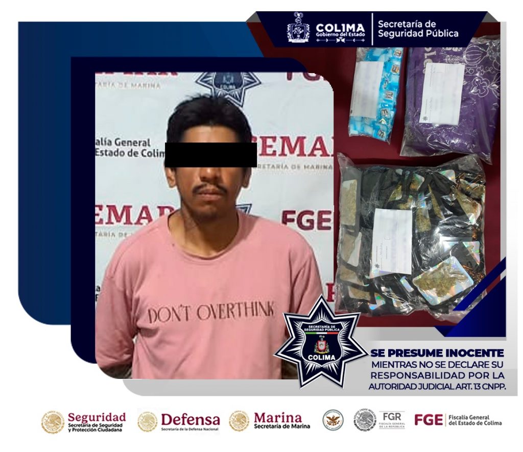 En seguimiento a las labores operativas que la Secretaría de Seguridad Pública (SSP) del Gobierno del Estado de Colima mantiene de forma coordinada con autoridades federales, estatales y municipales, se realizan patrullajes en el municipio de Colima, lo que culminó con la detención de un masculino por su probable participación en d3l1t0s contra la salud.