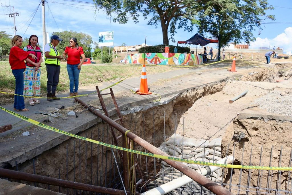 Villa de Álvarez, Col.- La Presidenta Tey Gutiérrez Andrade inspeccionó la obra de construcción de la primera etapa del colector pluvial en la colonia Lindavista II, al norte de la Ciudad de Villa de Álvarez,