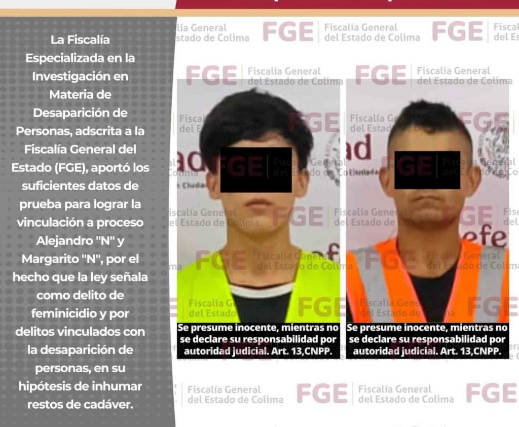 De acuerdo a la carpeta de investigación, los dos imputados presuntamente participaron en la d3s4p4r1c1ón de una mujer, quien fue vista por última vez en el mes de abril, tras salir de un domicilio ubicado en el municipio de Villa de Álvarez.